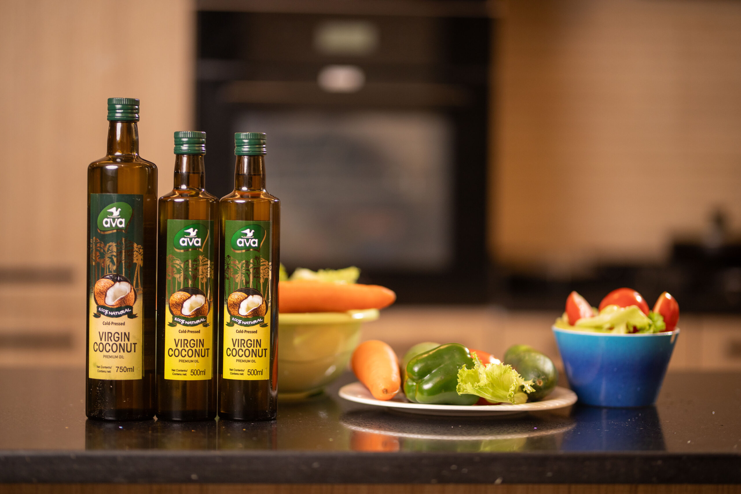 High-quality product photography to capture the premium nature of AVA VCO and related coconut-derived products.